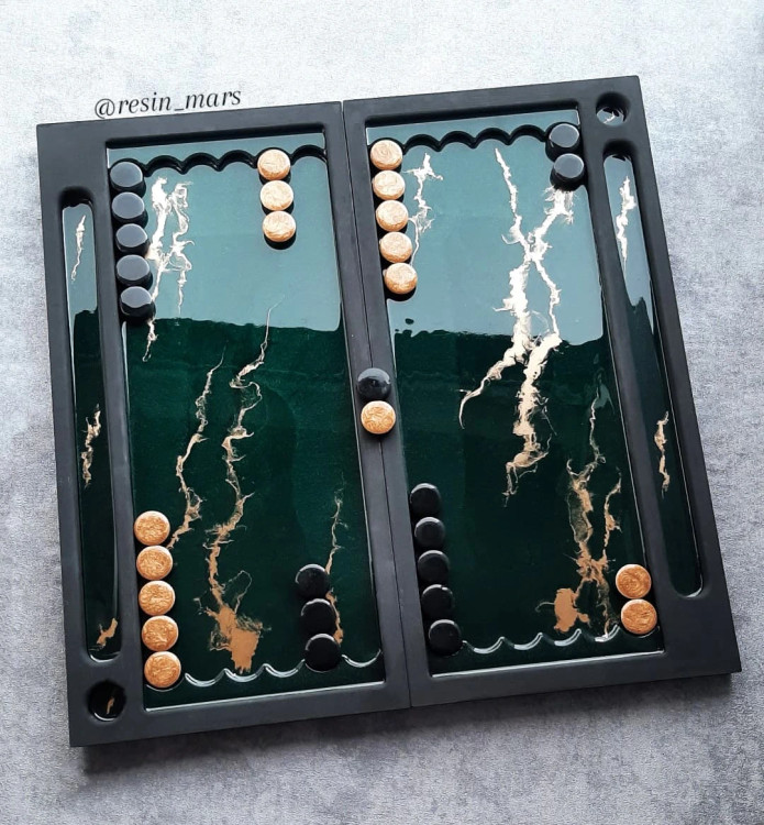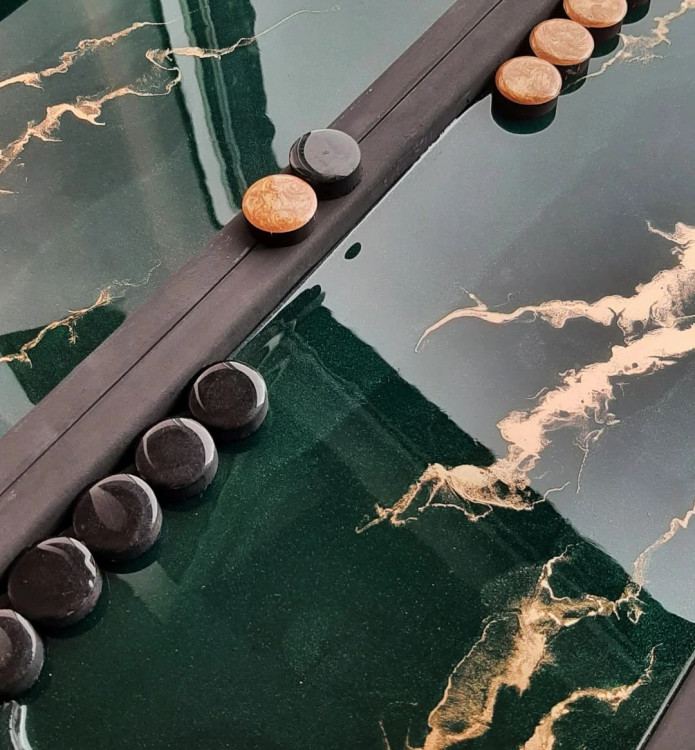 تخته نرد رزینی مشکی و سبز با رگه های طلایی