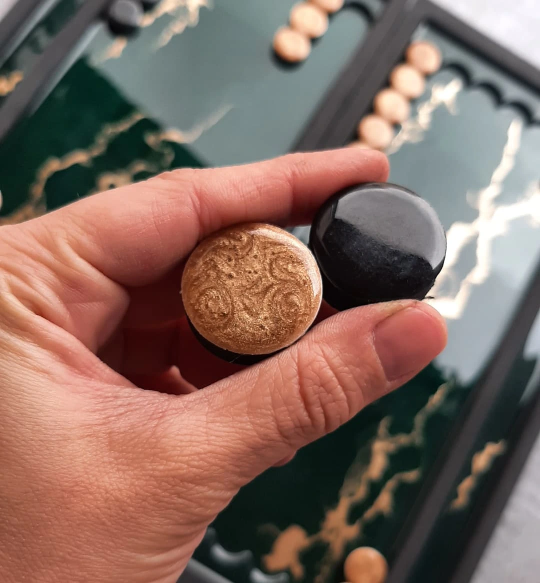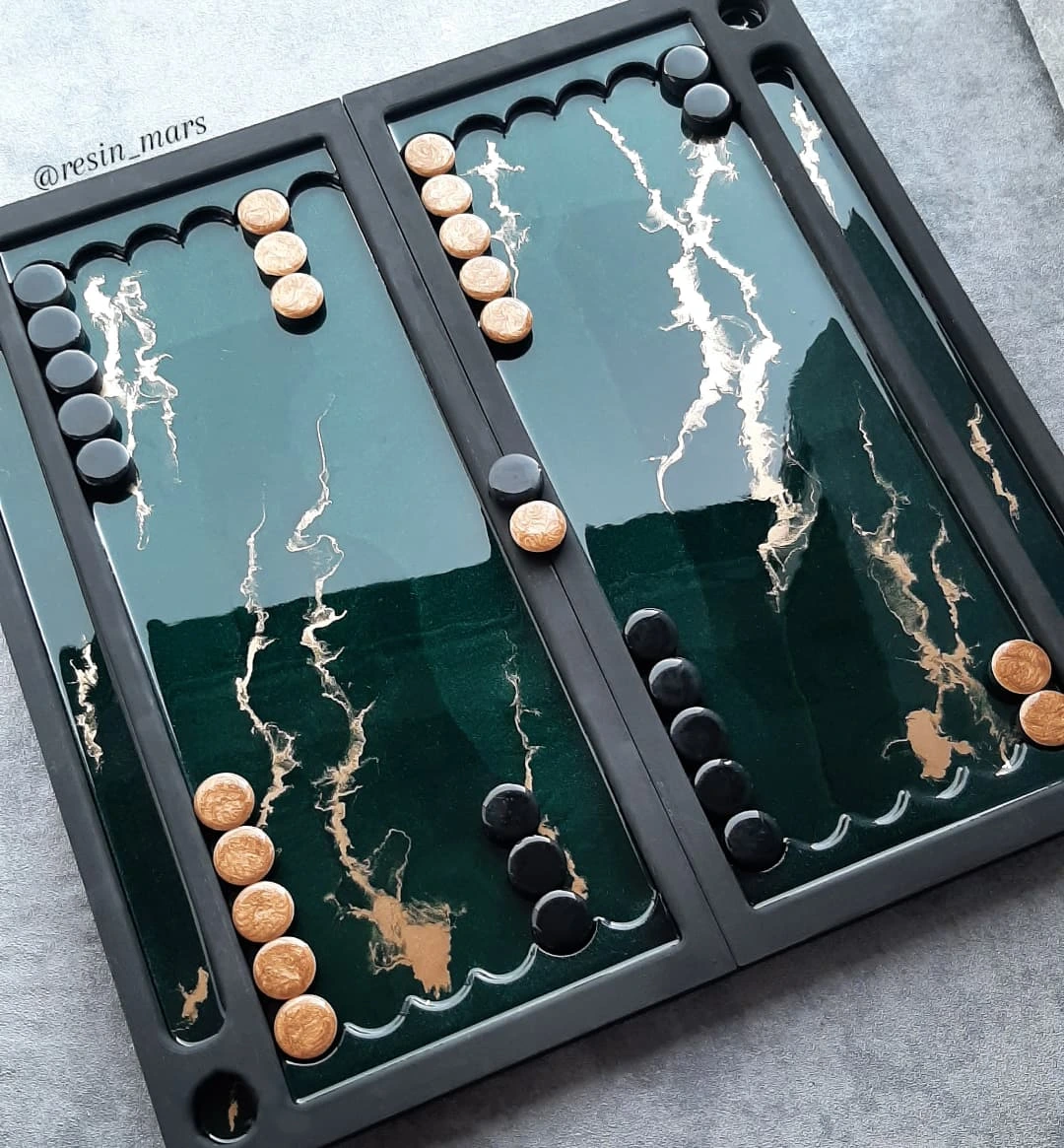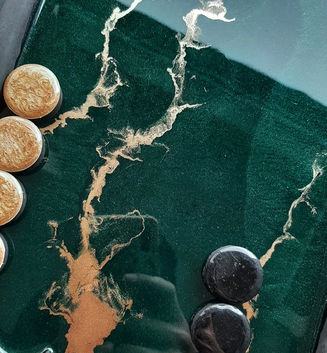تخته نرد رزینی مشکی و سبز با رگه های طلایی