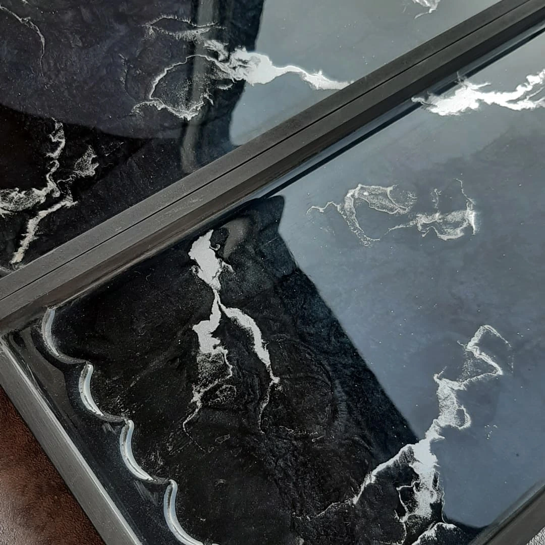ساخته شده با چوب ام دی اف مرغوب خارجی و 4 لایه رزین اپوکسی بسیار شفاف که نتیجه ی آن سطحی مستحکم ، براق و بسیار چشم نواز است .